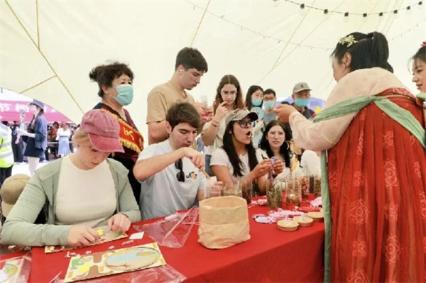 外國留學生體驗中國傳統文化。